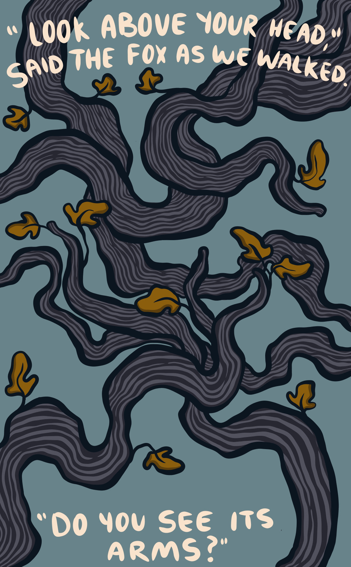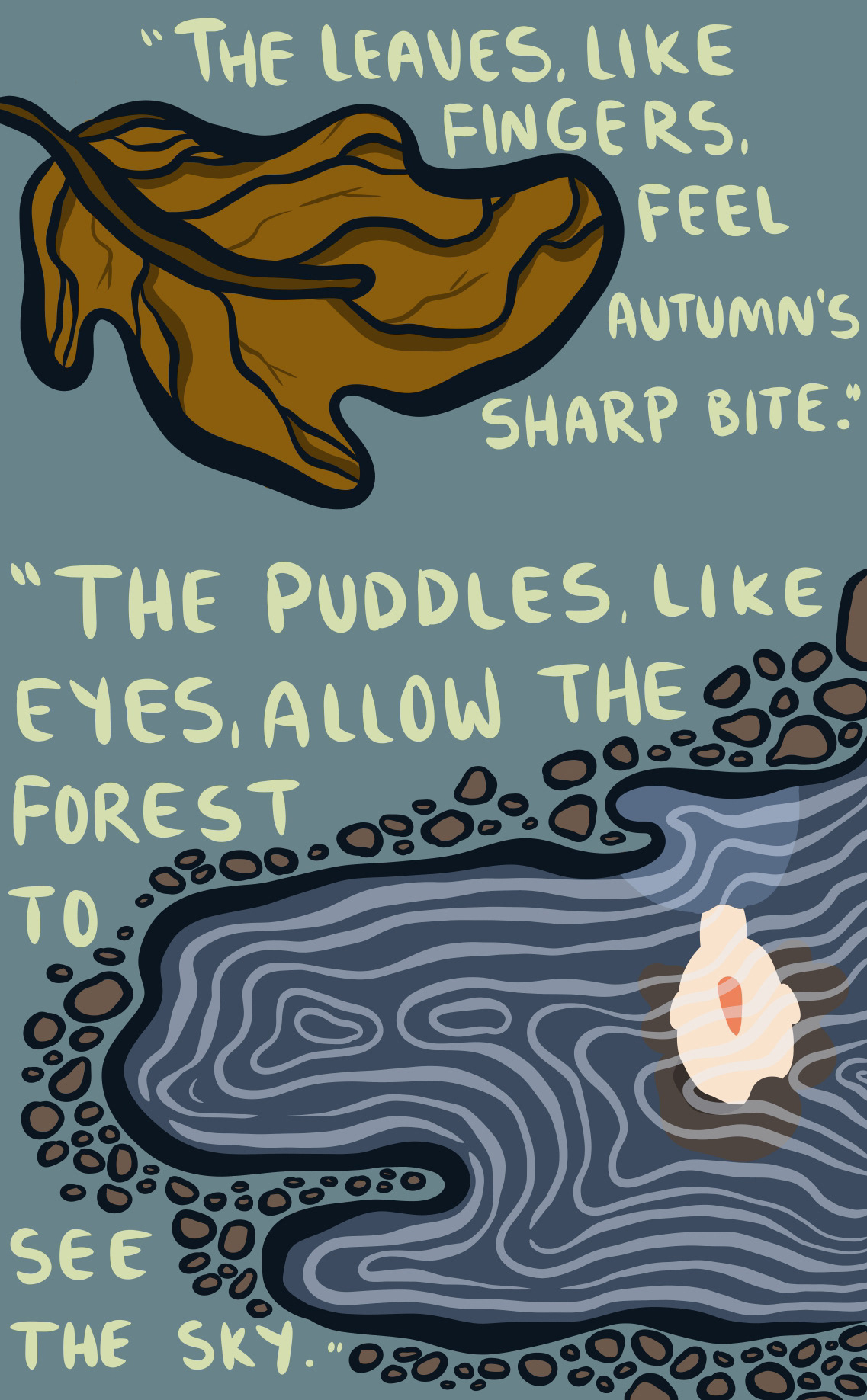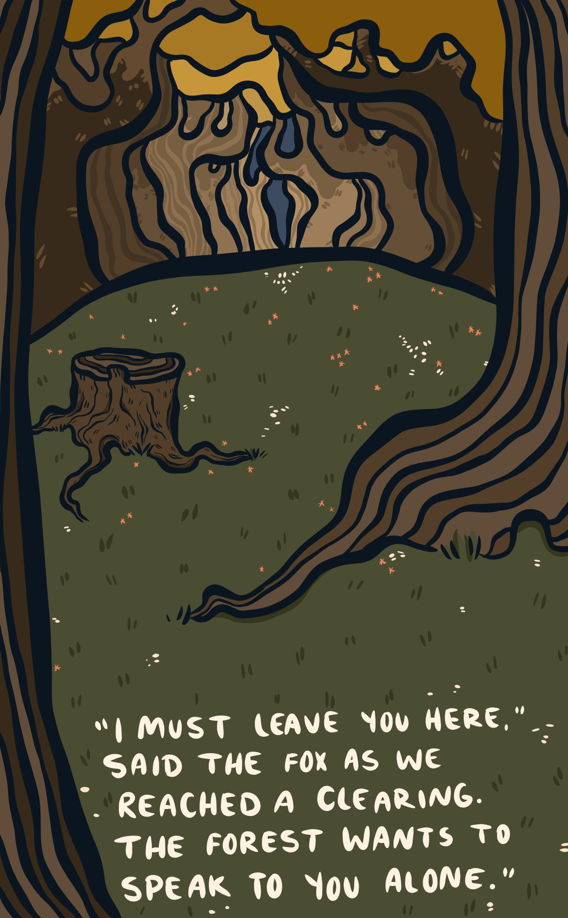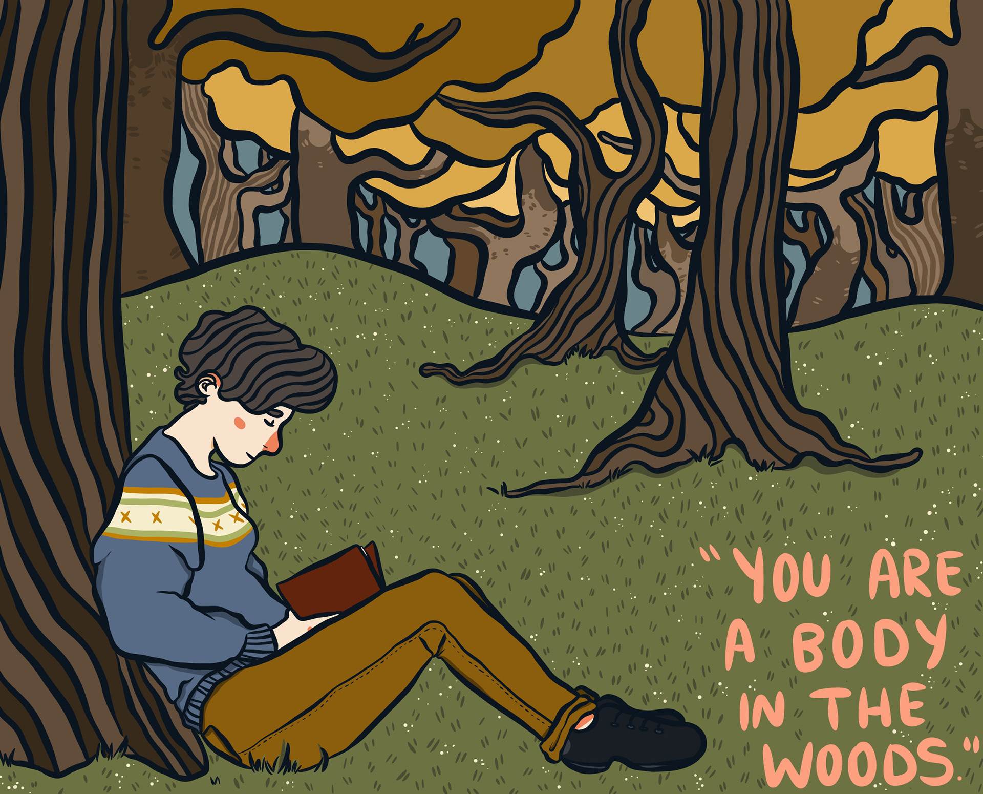 I Found a Body in the Woods is a short story that I wrote and illustrated during my second-year Book-Arts class at Concordia University. It was originally printed on an inkjet printer and hand-bound in an edition of three.